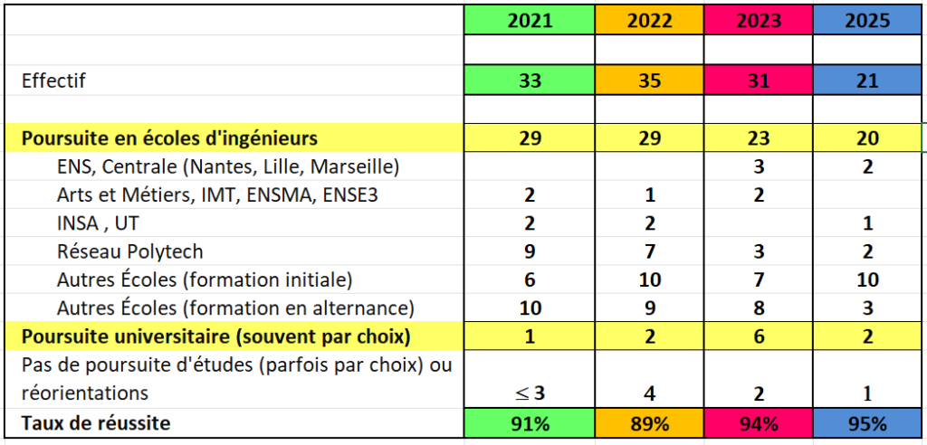 Les étudiants passés en ATS au lycée Livet ont intégré les écoles suivantes :